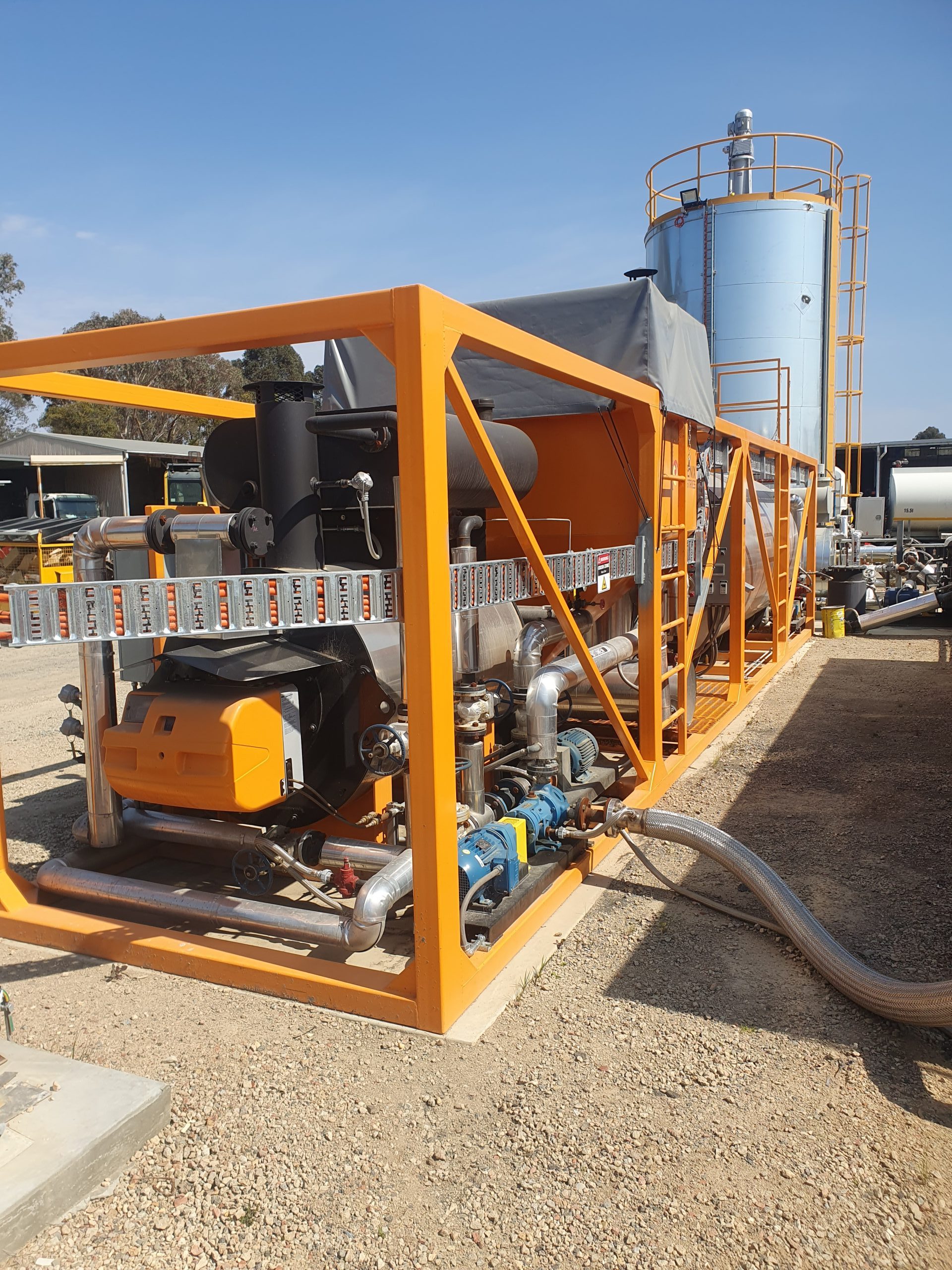 It is exciting to see the first regional asphalt manufacturing plant beginning production of rubber asphalt mix in Bairnsdale, Victoria. Supported by TSA with a contribution of $300,000, the upgrade involves the importation of a specialised shearing and blending plant from Phoenix Industries in Arizona. Phoenix Industries are specialist Manufacturers of this type of equipment used to infuse the granulated crumb rubber into hot class 170 bitumen.